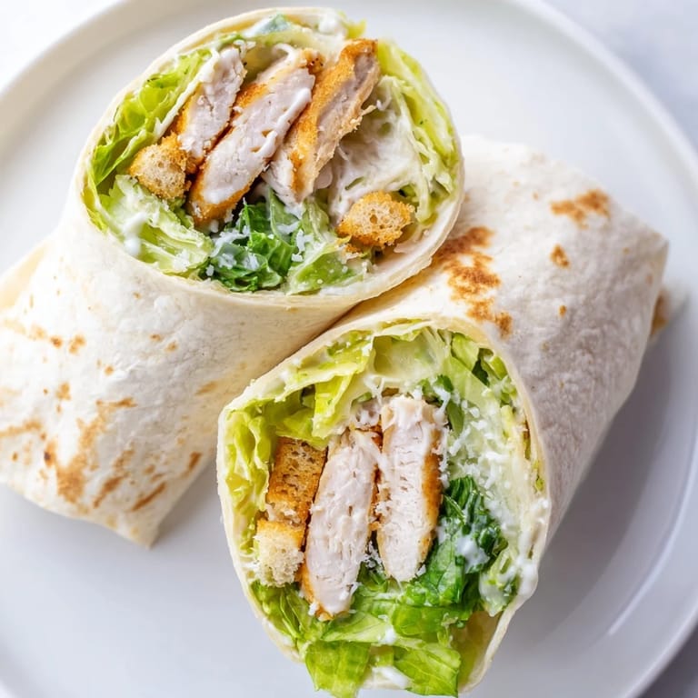 The beauty of these wraps is how easily they adapt to what you have on hand or what youre craving. I have swapped grilled shrimp for the chicken on nights when I wanted something lighter, and Ive added crispy bacon bits when I was feeling indulgent and wanted that extra smoky crunch. Cherry tomatoes, sliced thin, bring a pop of sweetness that cuts through the richness of the dressing, and a handful of baby spinach mixed into the romaine adds color and a little extra nutrition without changing the flavor. If youre feeding someone who avoids gluten, use gluten free tortillas and skip the croutons or swap them for roasted chickpeas, theyll still get that satisfying crunch.