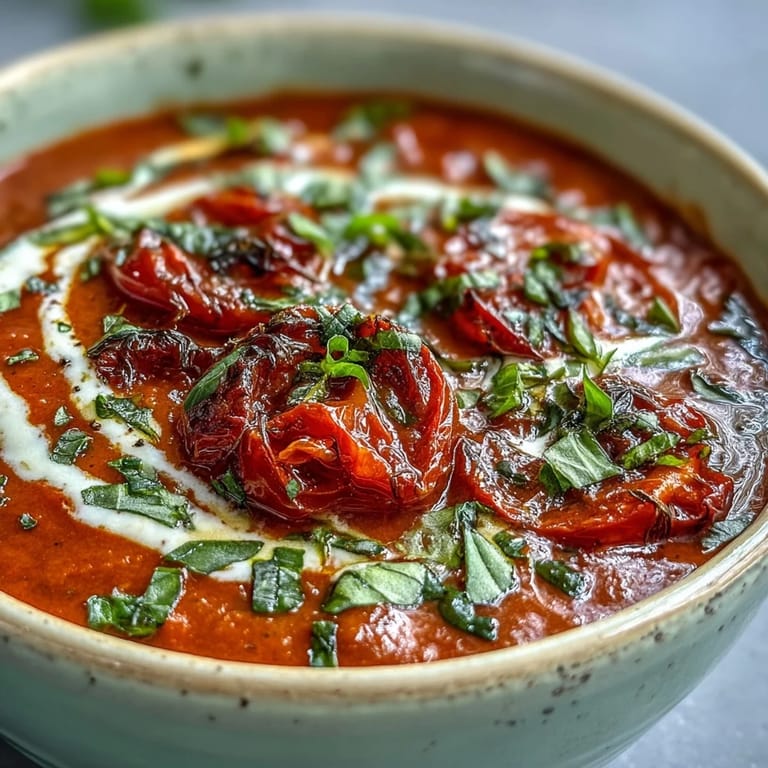 Pin It There's a particular afternoon in late August when my kitchen smells nothing like itself, and it's because I've finally learned to roast tomatoes instead of boiling them into submission. A friend had mentioned this trick almost offhandedly while we were shopping at the farmers market, pointing at the pile of overripe heirlooms and saying the oven changes everything. That first batch emerged golden and concentrated, the skins blistered and practically sliding off, and when I poured them into soup I couldn't believe the depth of flavor that had been waiting the whole time. Now it's become the soup I make when I want to feel like I'm cooking something special without fussing endlessly.